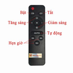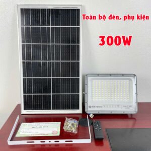Phụ kiện kèm theo : Thân đèn, tấm pin (dây dài 5m), giá đỡ, điều khiển, bu lông ốc vít, thẻ bảo hành.