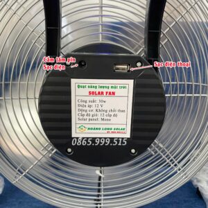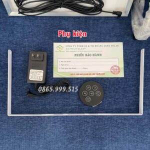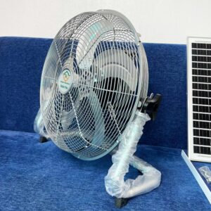 Thân quạt, tấm pin mặt trời, giá đỡ ,bộ ốc lắp đặt, Sạc điện lưới, điều khiển từ xa, phiếu bảo hành